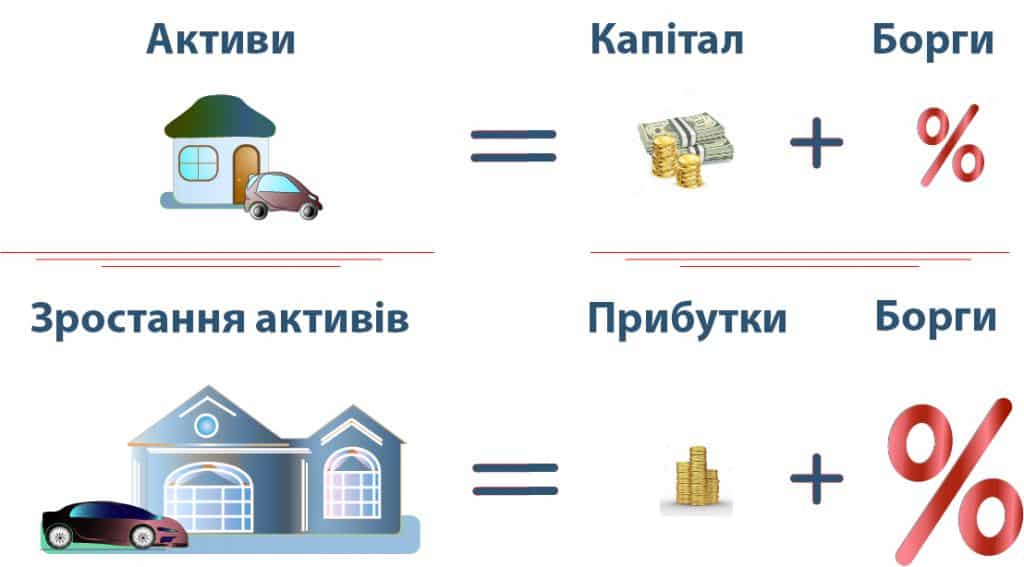 Коли у фінансовому балансі збільшується вартість активів відносно власного капіталу – ризик банкрутства зростає.