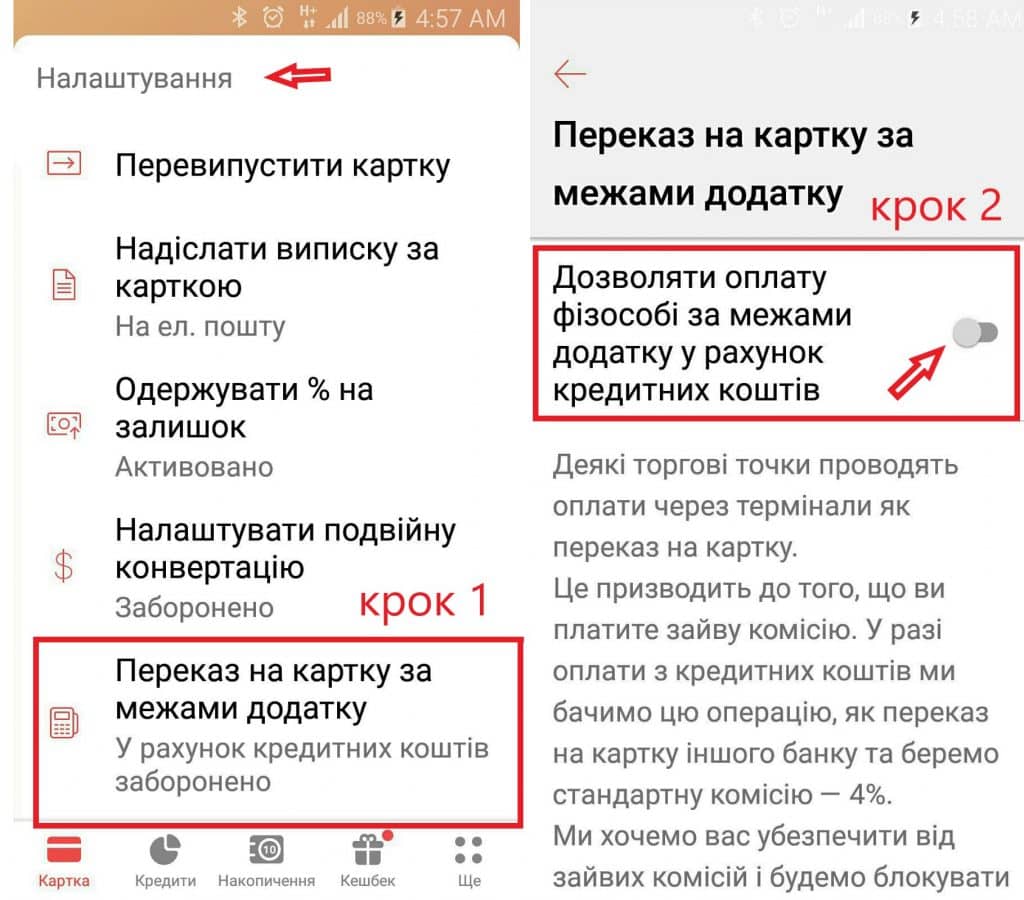 Як****в додатку Моно увімкнути блокування платежів фізособам в кредит?