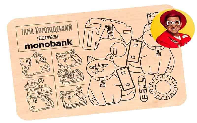 З карткою монобанк дитана отримає подарунки – яскраві стікери та конструктор фірмового кота, який дуже подобається дітям.