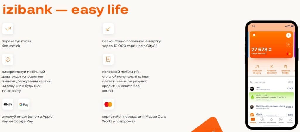 IZI Bank є сучасним банком, який пропонує широкий спектр фінансових послуг, орієнтований на клієнтів, які не бояться експериментувати та шукають зручний банкінг в телефоні.