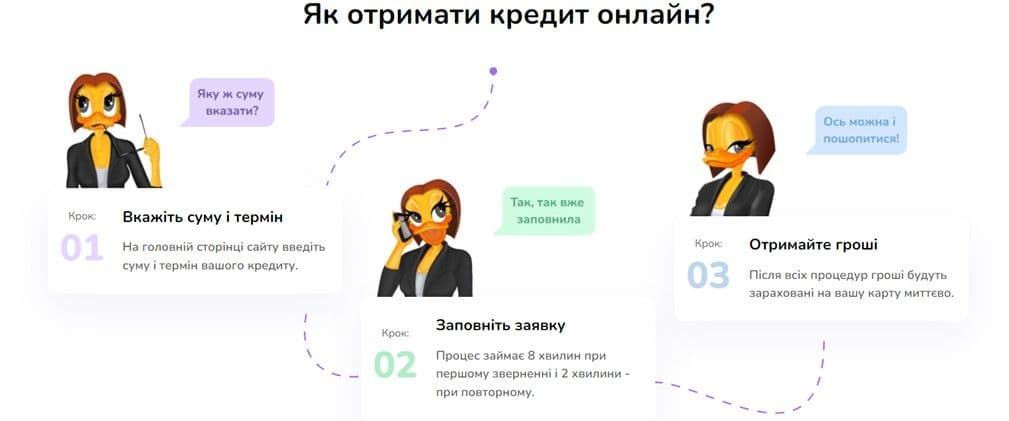 При першому зверненні потрібно пройти ідентифікацію особи. При повторному зверненні за позикою заявки перевіряє автоматизована система скорингу, тому рішення приходить за 2-3 хвилини.