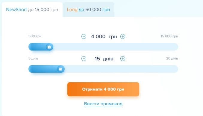 • New Short Credit – до 15000 грн на термін до 30 днів;