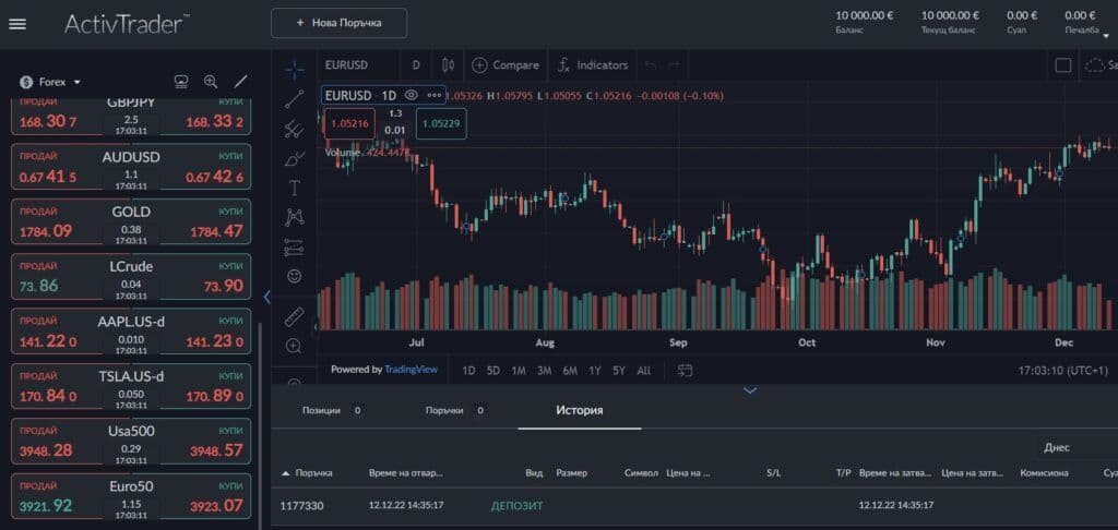 Усі графіки в ActivTrades використовують відому платформу TradingView.