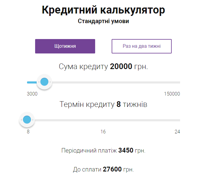Для зручності клієнтів на сайті Бізнес Позика є калькулятор відсотків. Скориставшись ним ви можете до оформлення кредиту дізнатися відсоток по кредиту.