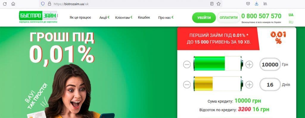 Щоб написати наші відгуки, ми анонімно скористались послугами Бистро Займ. Ми перевірити швидкість реєстрації та реальну вартість кредиту. Ми будемо вдячні за ваші відгуки та оцінки, якщо ви скористались послугами компанії.