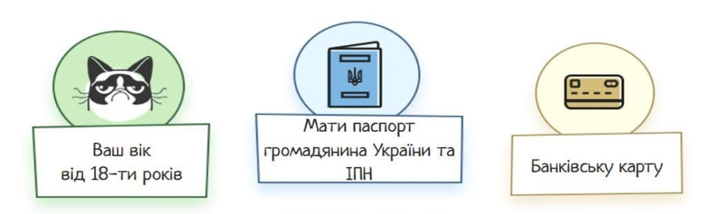 | Документи | Паспорт, код, банківська картка |