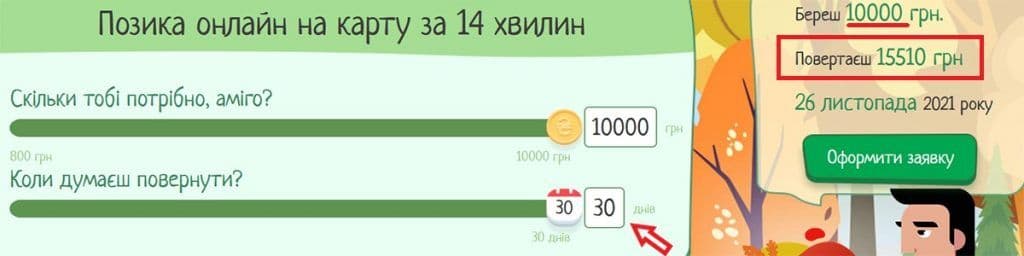 Отримати позику з поганою кредитною історією дійсно можливо, якщо немає прострочених боргів. Максимальна сума трохи занизька, людям віком до 25 років можуть запропонувати позичити до 2000 грн. Схвалюють приблизно 65% заявок. На повторну позику завжди пропонують промокоди на знижку від 20% до 40%.