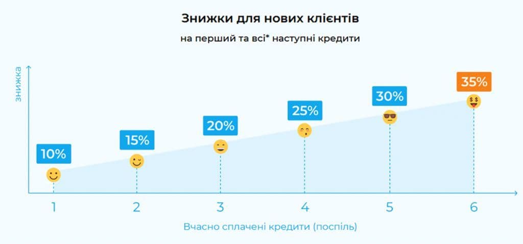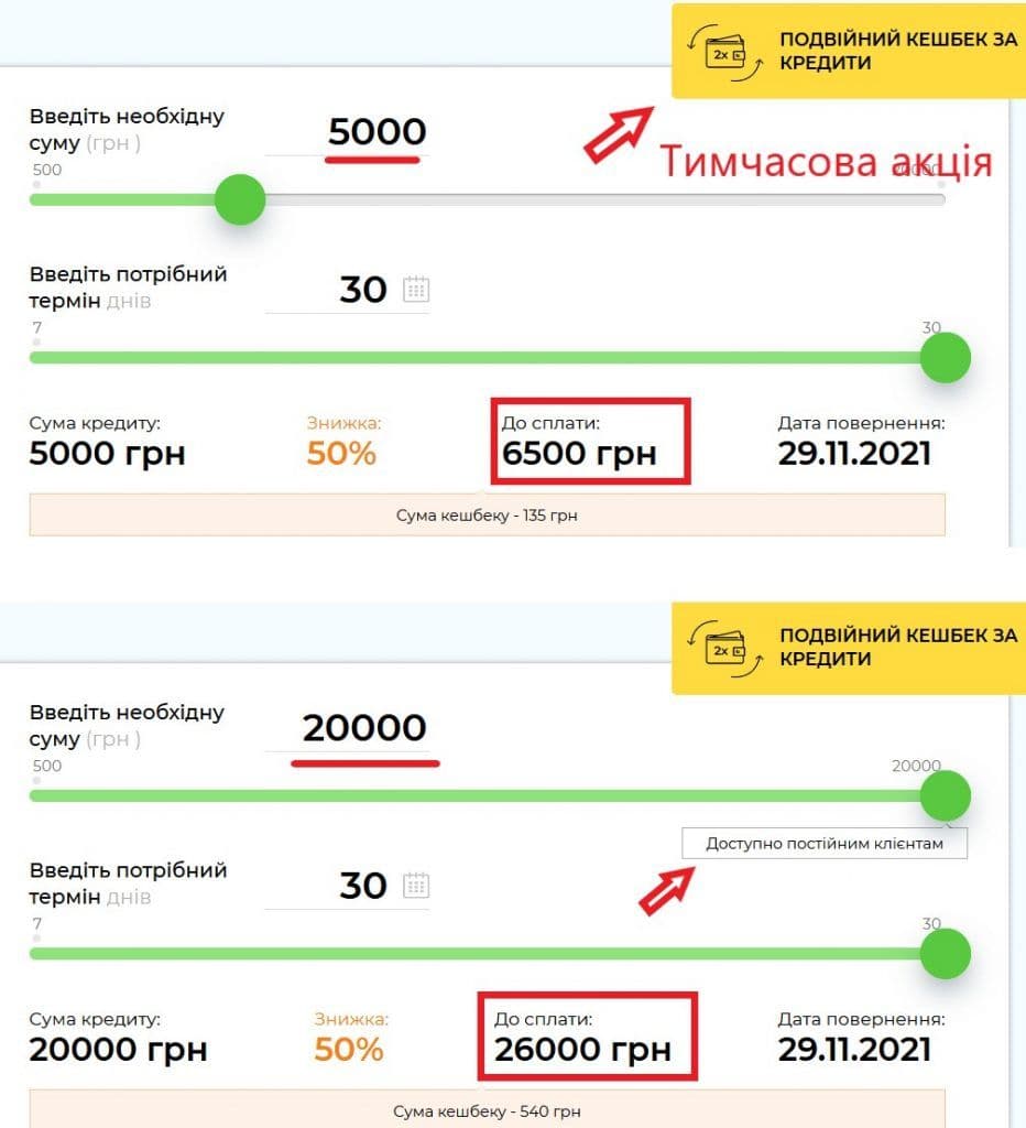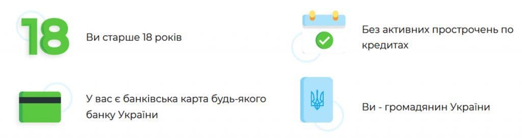 Вимоги спрощені, але заявки часто відхиляють. Сума доступної позики поступово зростає від 2000 грн до 20000 грн після 15-го звернення. Половина заявок отримують позитивну відповідь, але людям з невисоким рейтингом часто пропонують меншу суму.