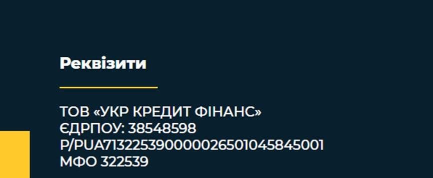 Кредитний сервіс належить ТОВ «УКР КРЕДИТ ФІНАНС». Директором є Резуєв Євген Володимирович.