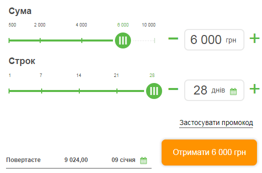 Для нових клієнтів розмір позики порівняно низький – 6000 грн