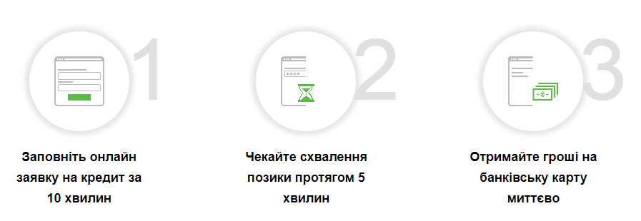 Українське громадянство Вік з 18 років Відсутність боргів на дату оформлення заявки Наявність банківської картки та мобільного телефону з українською SIM