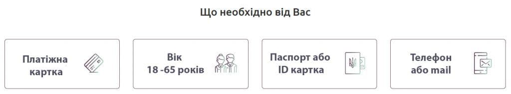| Документи для оформлення | Паспорт або ID картка, ІПН |
