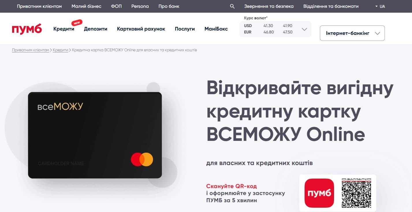 Продукти банку мають сучасні риси, досить гнучкі і доступні. Нам сподобалися інтернет-банкінг «ПУМБ онлайн» та його альтернатива Viber-банк ПУМБ. Зацікавлення викликали картки з кешбеком, а також регулярні акції по кредитках, що дозволяють отримувати грошові бонуси. Серед недоліків –доволі суттєві переплати за споживчою розстрочкою.