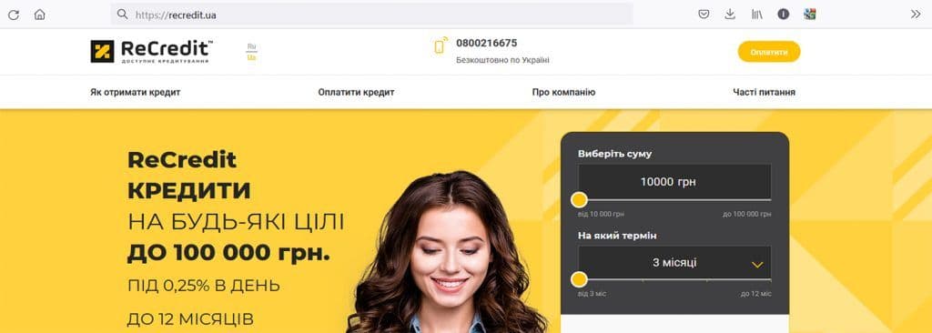 ReCredit — це український сервіс, який спеціалізується на перекредитуванні мікрозаймів та наданні нових кредитів на карту. Доступне повністю онлайн оформлення до 30 000 грн, а більші суми потребують підписання договору офлайн. Сервіс зручний для фізосіб та підприємців, має помірні вимоги до позичальників, прозору комісію та підтримку телефоном і у Viber.