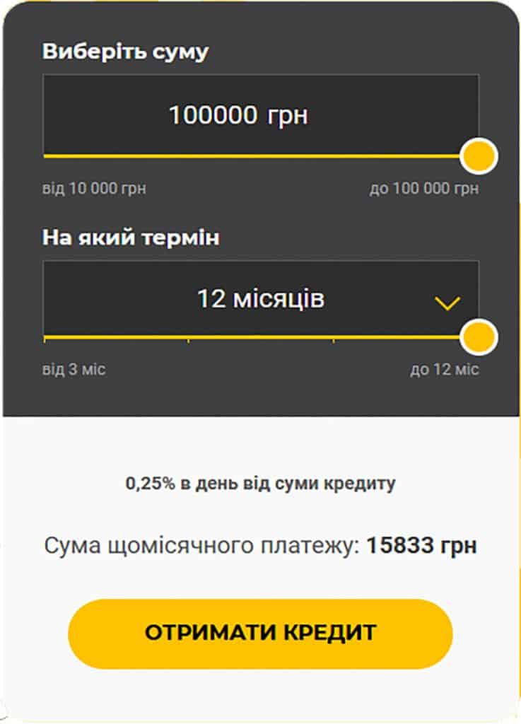 | Процентна ставка | 7,5% на місяць (0,25% на день) |