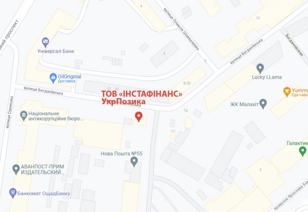 УкрПозика працює на інтернет-платформі, реальних відділень та філіалів в регіонах компанія не має. Центральний офіс " ТОВ «ІНСТАФІНАНС» зареєстрований у Києві.