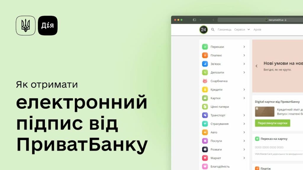 ПриватБанк пропонує можливість оформлення двох типів підписів – УЕП та SmartID. Для отримання ЕЦП потрібно бути клієнтом ПриватБанку, зареєстрованим у мобільному додатку.