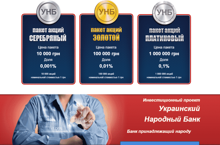 Український народний банк – фіктивний банк, який представлений у вигляді інвестиційного проекту в інтернеті. Організатори пропонують вкласти кошти у «банк» і стати його «акціонером». Про небезпеку інвестицій у даний проект попереджає НКЦПФР.