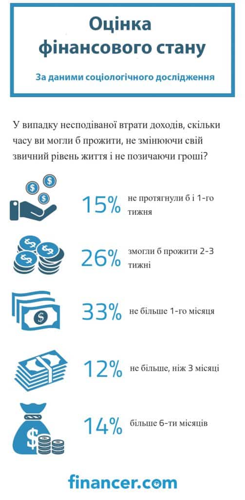 Якщо боргів немає – першою ціллю повинно стати створення так званої «фінансової подушки». Розмір такого резервного фонду має бути таким, щоб родина могла прожити щонайменше 3 місяці на власні кошти – не звертаючись за кредитом, чи за фінансовою допомогою родичів.