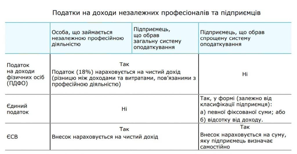 Доходи людей, які не є найманими працівниками і не отримують регулярну зарплату, оподатковуються інакше. Людина може бути зареєстрована, як фізична особа підприємець, або як самозайнята особа, яка займається незалежною професійною діяльністю.