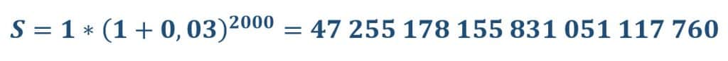 Уявіть собі, що ваш пра-пра-… дідусь 2000 років назад поклав 1 долар на депозит під 3% річних з правом їх капіталізації, й залишив вам у спадок цей вклад. Яку суму ви могли б отримати?