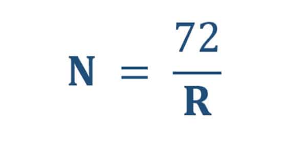 Якщо вкласти певну суму S під річний відсоток R, то подвоєння вкладу відбудеться за кількість років N, яку можна знайти, розділивши число 72 на розмір відсотків.