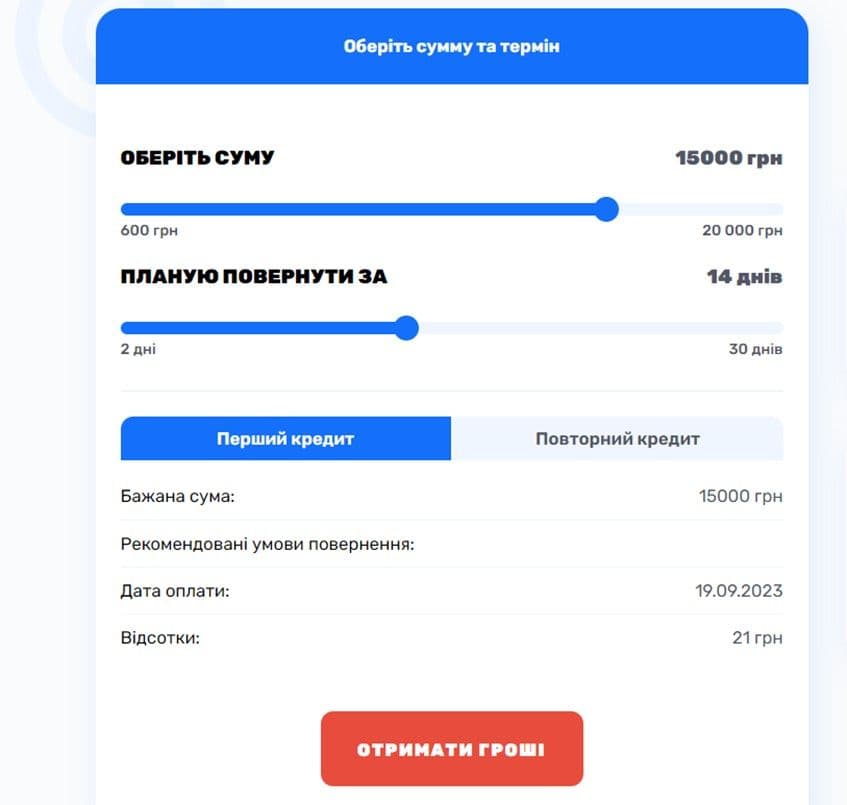 У Credos доступні позики від 0,01% до 3% на день. Перша позика — під пільгову ставку, повторні — дорожчі. Висока гнучкість, але ставки на постійній основі — одні з найвищих серед МФО.